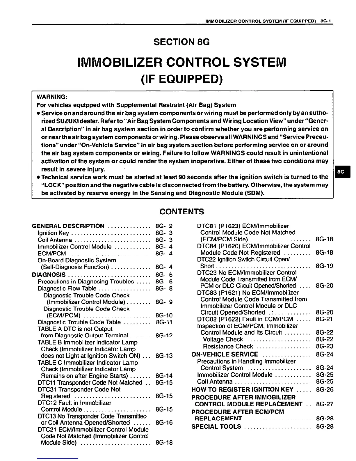 Suzuki VITARA - Immobilizer Control System