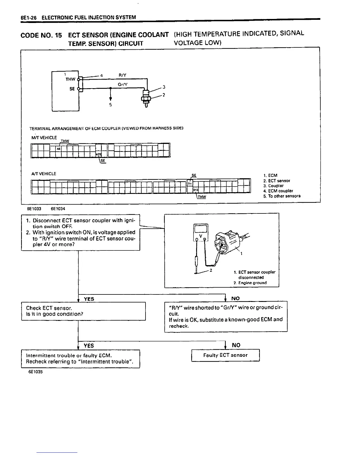 Suzuki VITARA - Code no 15 ECT Sensor (Engine Coolant Temp. Sensor) Circuit (High Temperature Indicated, Signal Voltage Low)