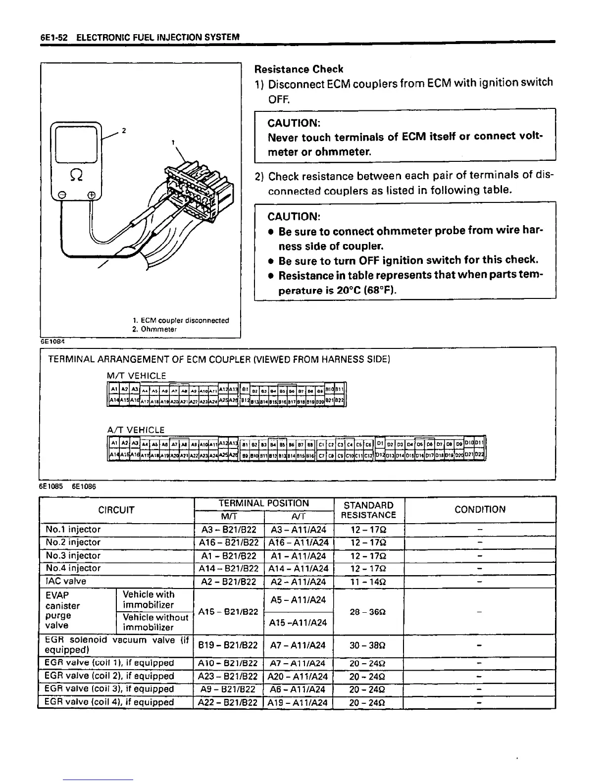 Suzuki VITARA - Terminal Arrangement of ECM Coupler (Viewed from Harness Side)
