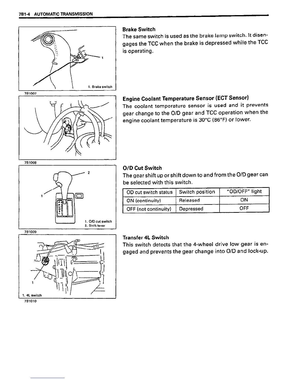 Suzuki VITARA - Brake Switch; Engine Coolant Temperature Sensor (ECT Sensor) Usage; O;D Cut Switch; Transfer 4 L Switch