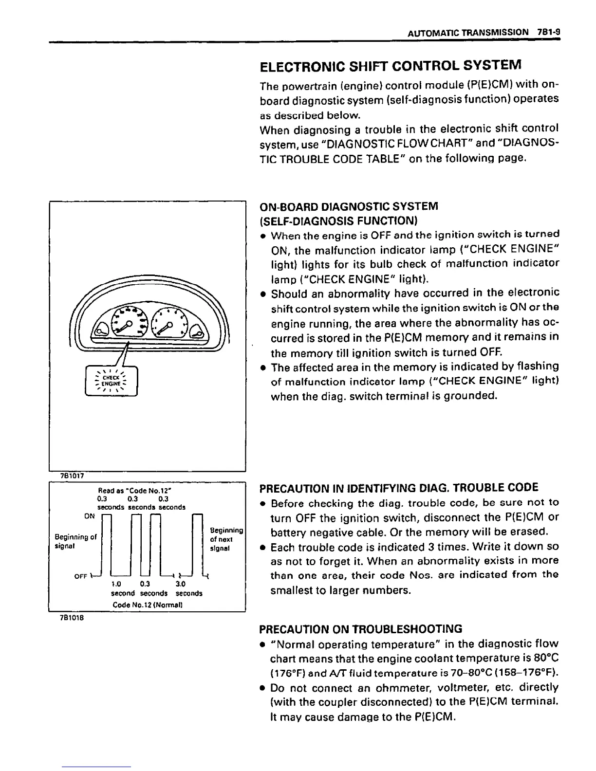 Suzuki VITARA - Electronic Shift Control System; Precaution in Identifying Diag. Trouble Code