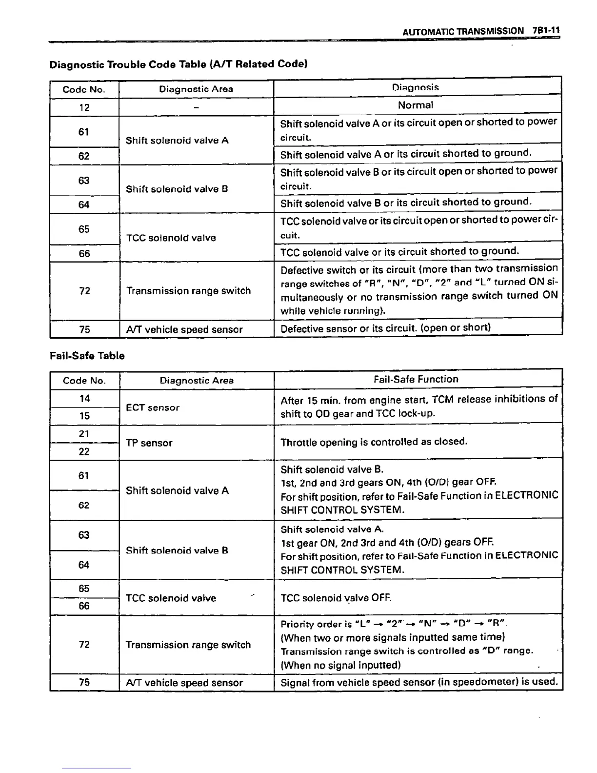 Suzuki VITARA - Diagnostic Trouble Code Table (A;T Related Code); Fail-Safe Table