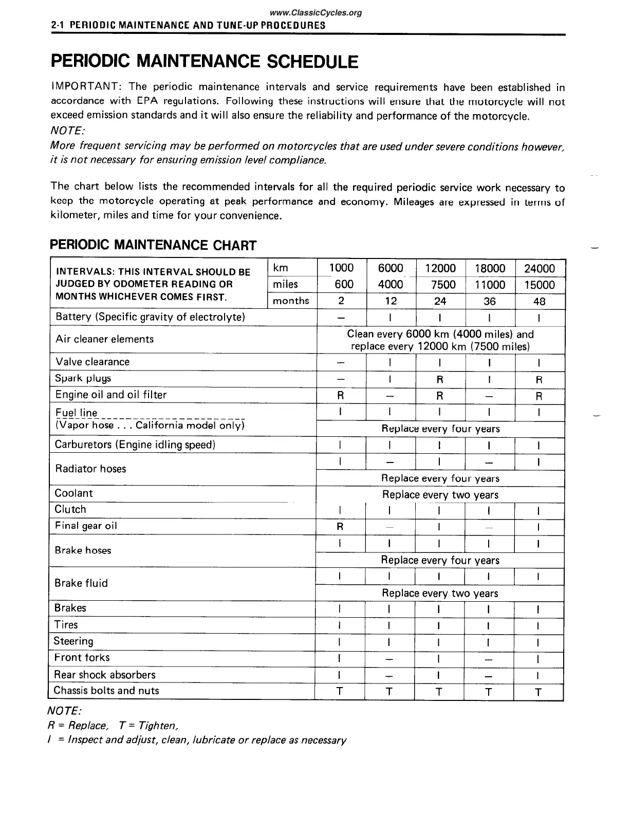 keep the motorcycle operating at peak performance and economy. Mileages are expressed in terms