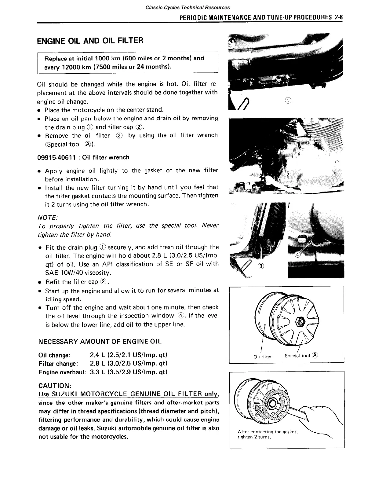 Use SUZUKI MOTORCYCLE GENUINE OIL FILTER only,