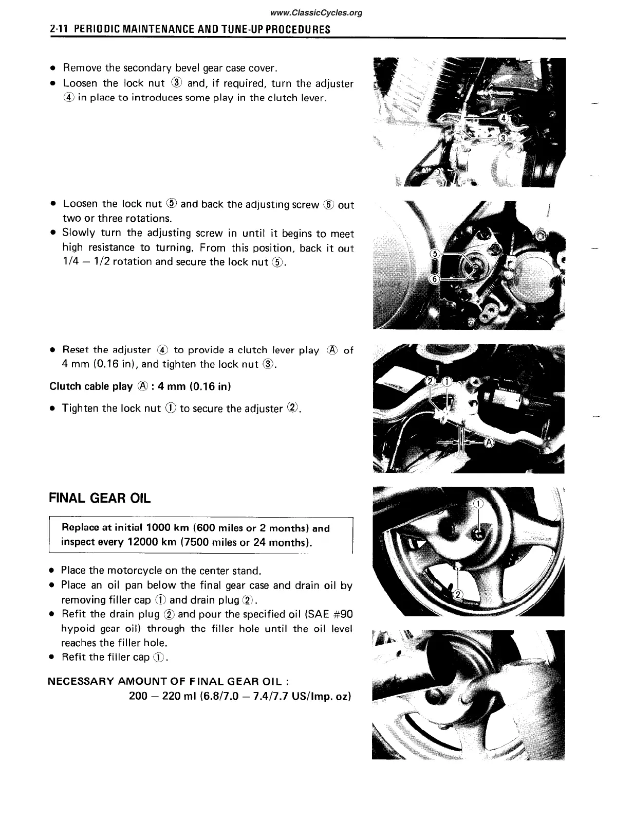 Reset the adjuster @ to provide a clutch lever play 8 of