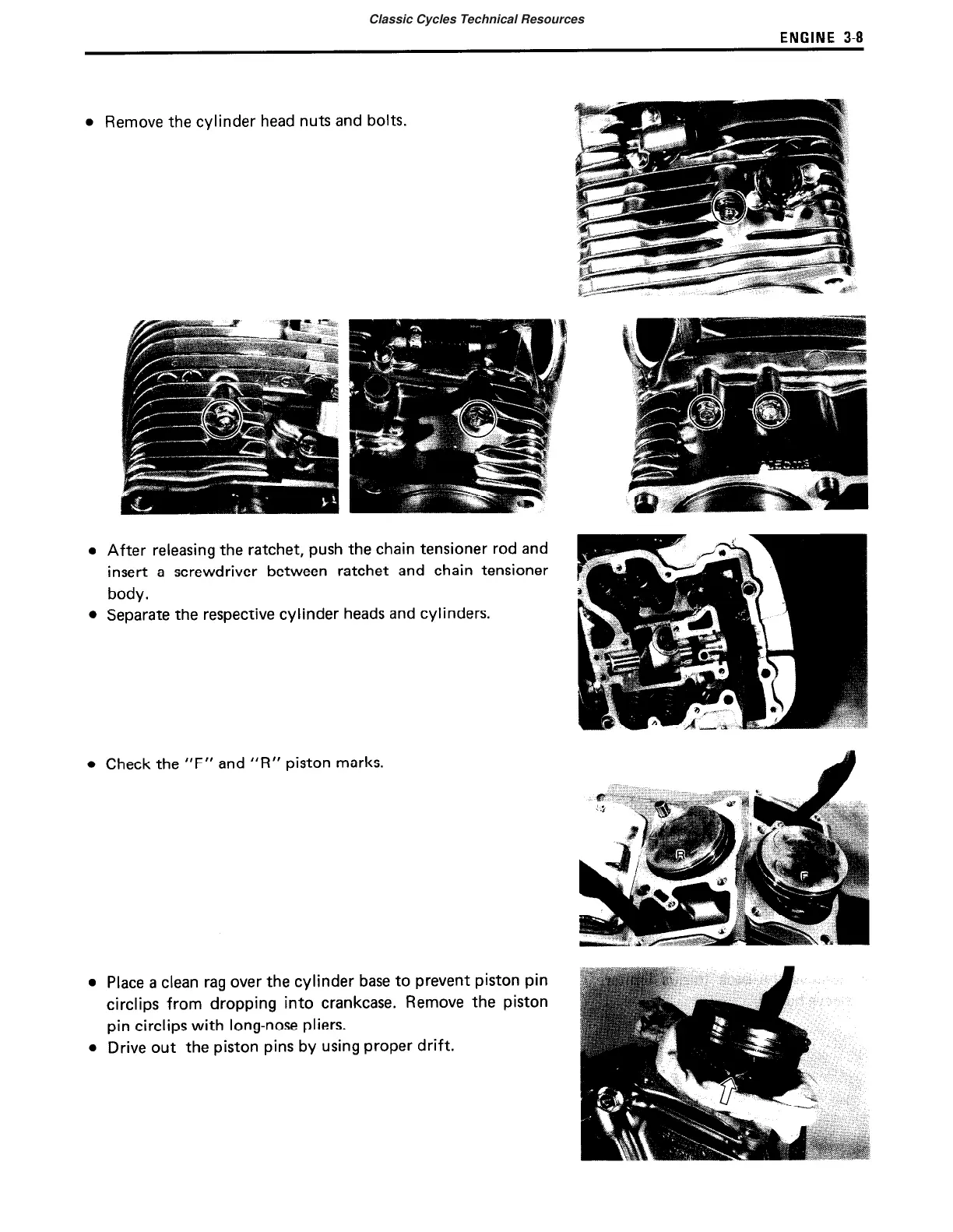 circlips from dropping into crankcase. Remove the piston
