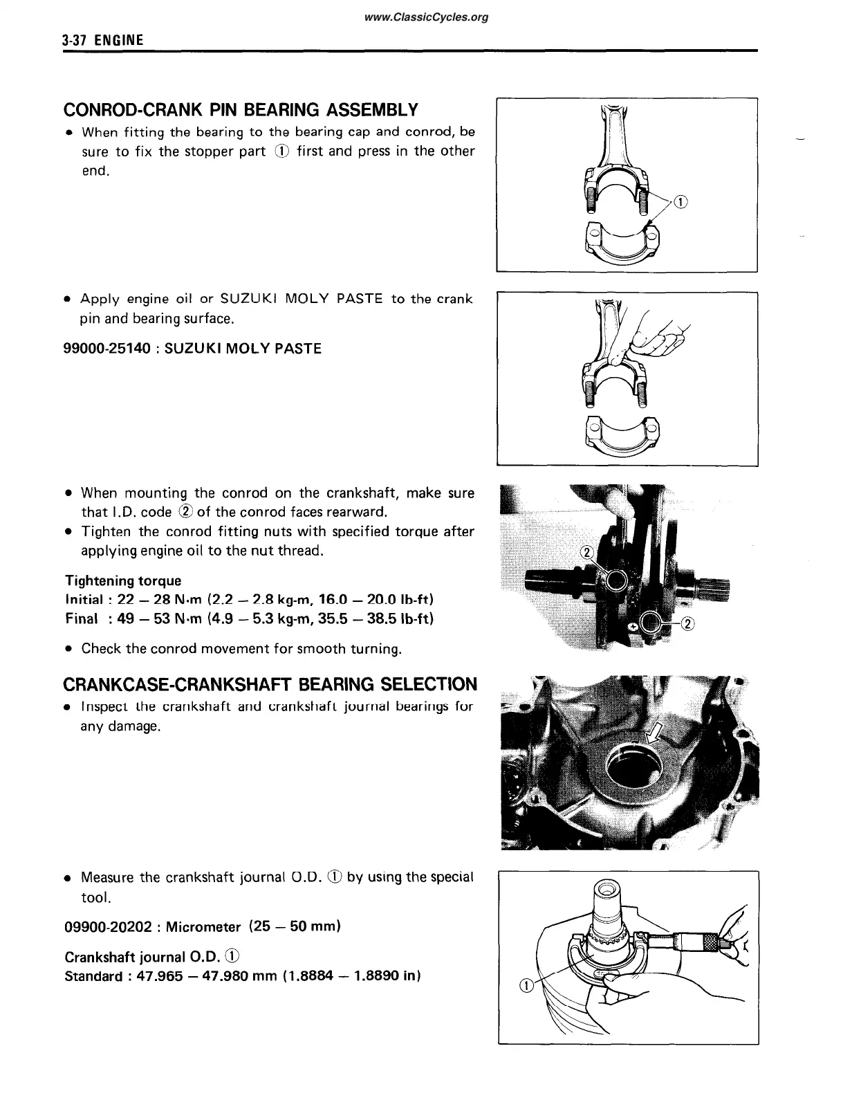 Apply engine oil or SUZUKI MOLY PASTE to the crank