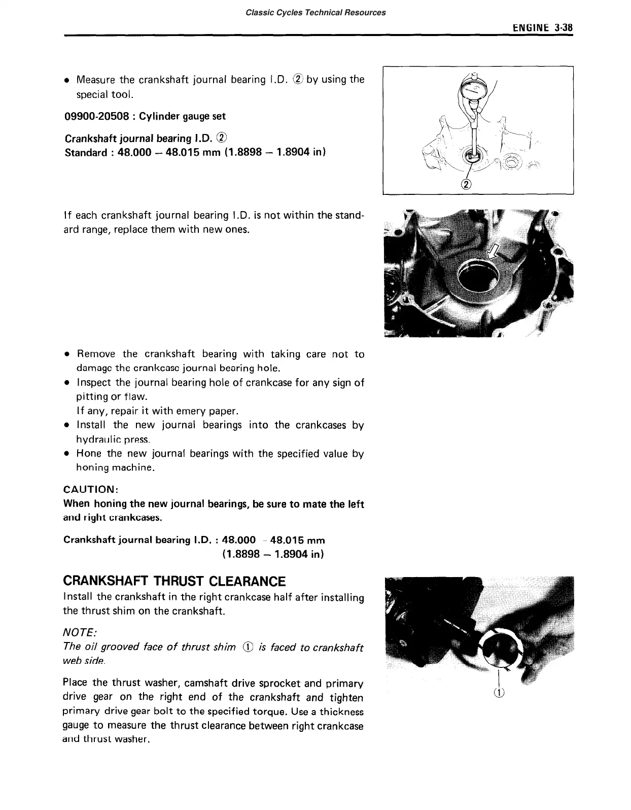 The oil grooved face of thrust shim @ is faced to crankshaft