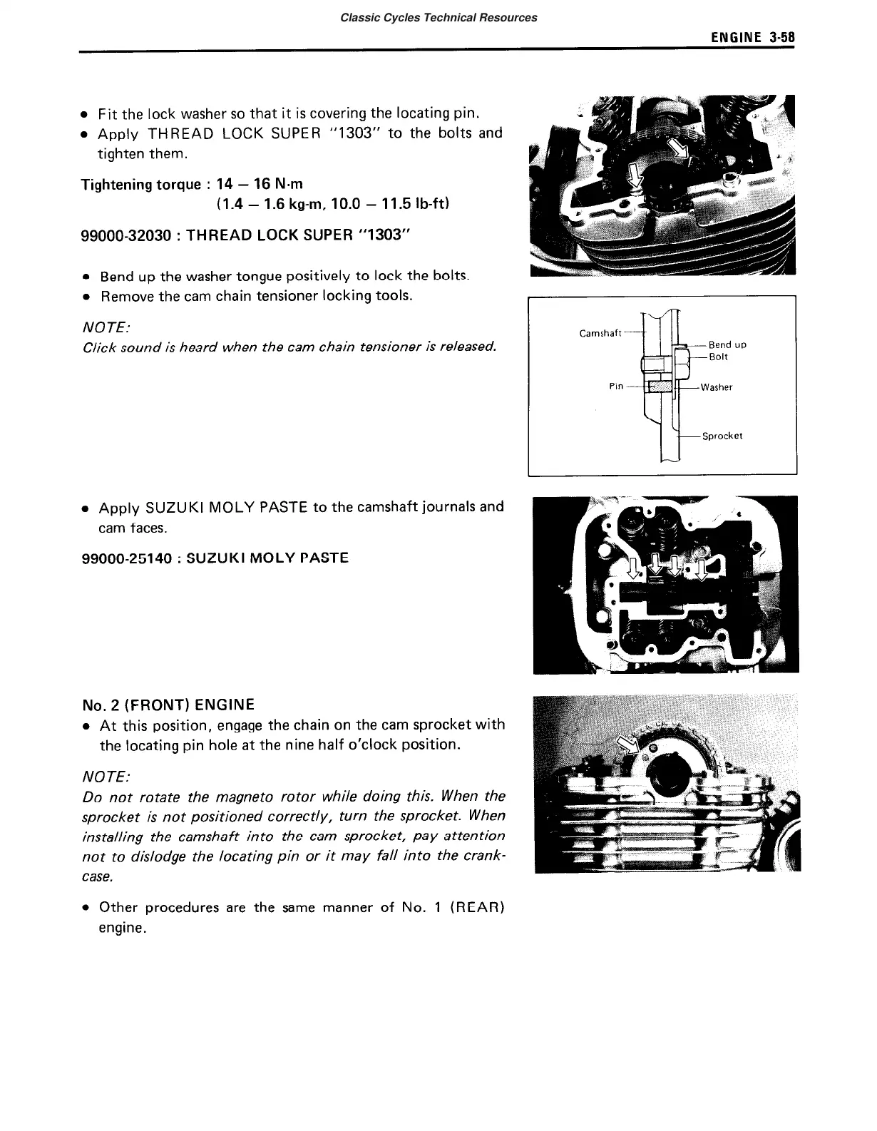 Apply SUZUKI MOLY PASTE to the camshaft journals and