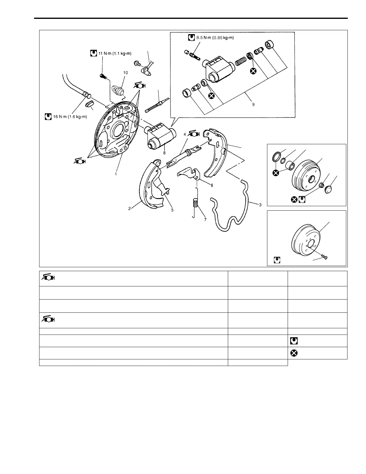 6. Adjuster actuator 14. Brake drum Tightening torque
