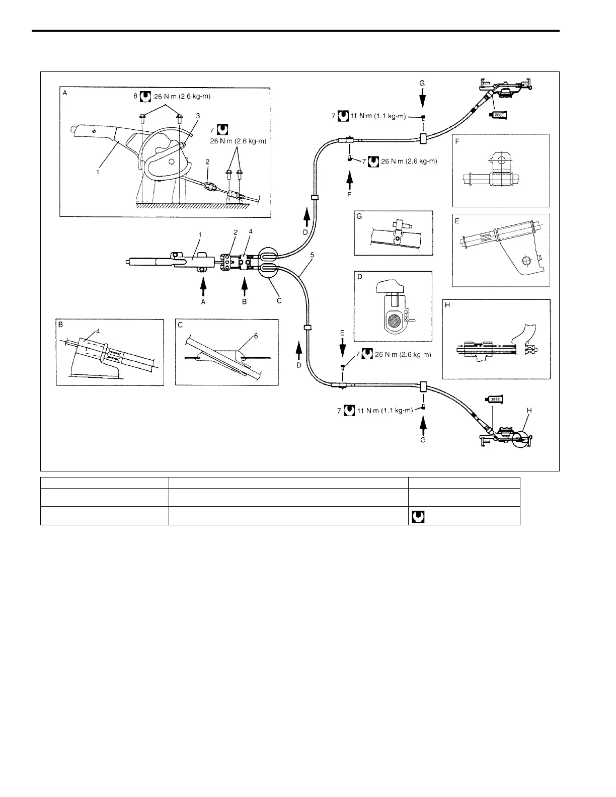 1. Parking brake lever assembly 4. Parking cable bracket 7. Parking brake cable bolt