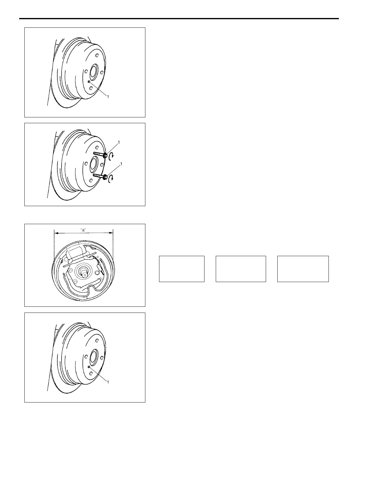 a) Pull brake drum off by using 8 mm bolts (1).