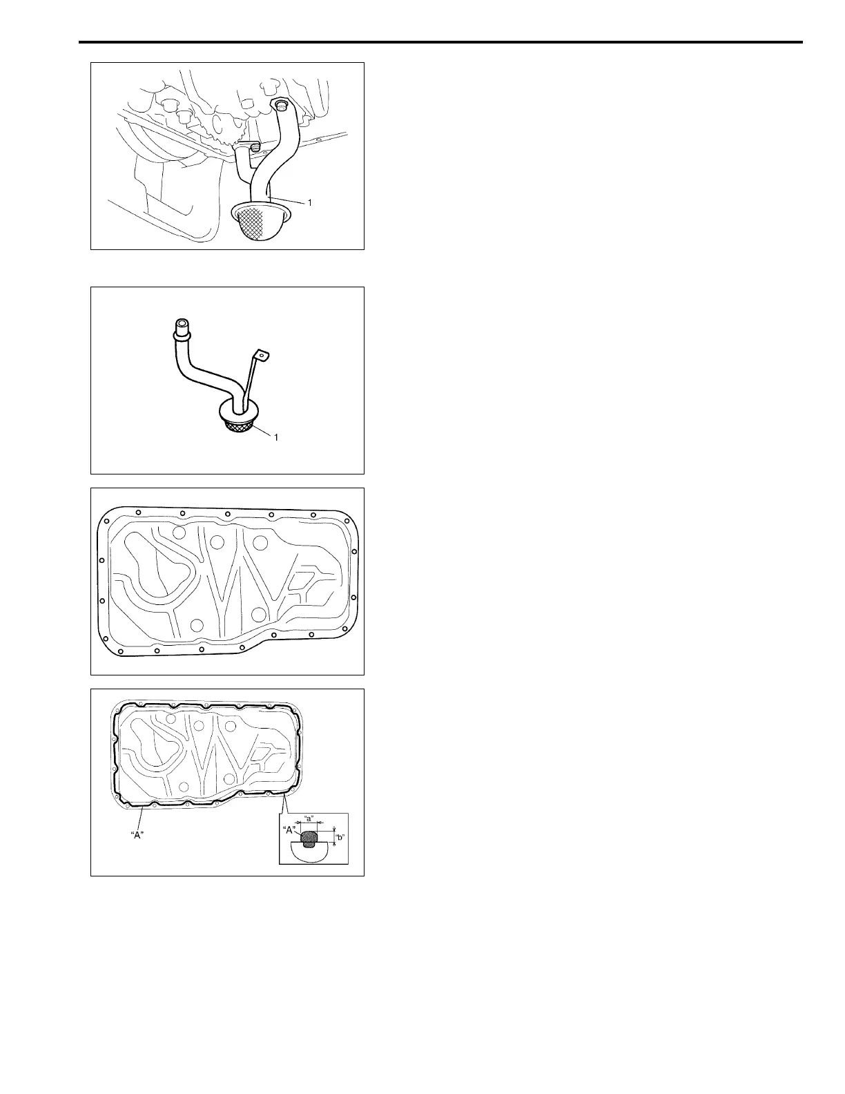 6) Remove oil pan and then oil pump strainer (1) from cylinder
