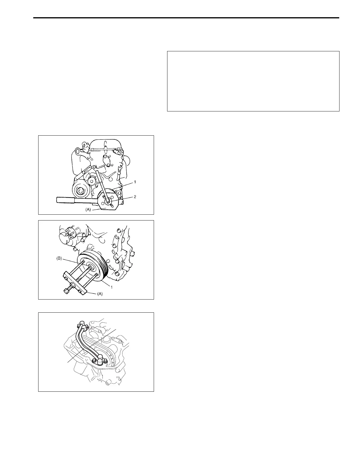 7) Remove oil gallery pipes No.2 (1) and No.3 (2).