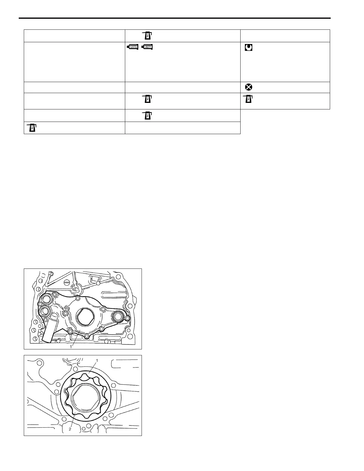“b”: 2 mm (0.08 in.) 6. Oil pump rotor plate bolt Do not reuse.