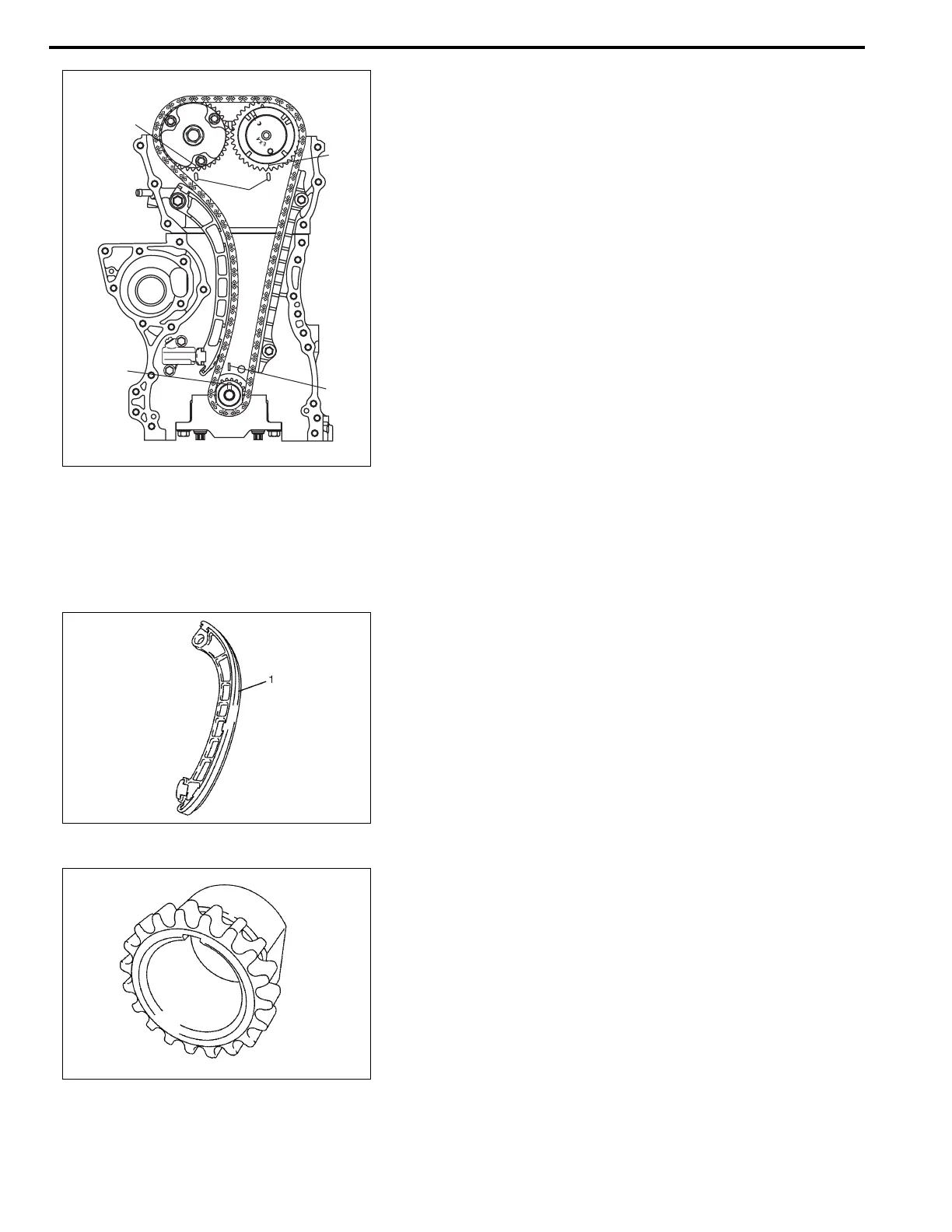 • Check timing chain tensioner (1) for wear or damage.