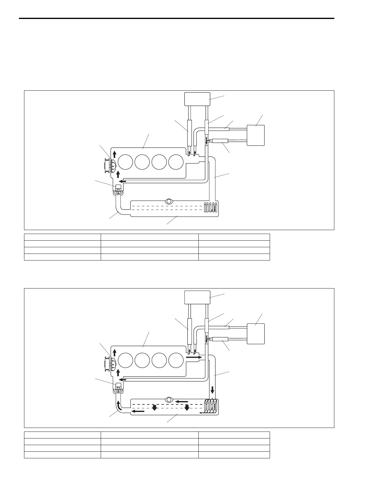 While the engine is warmed up (thermostat closed), coolant circulates as follows.