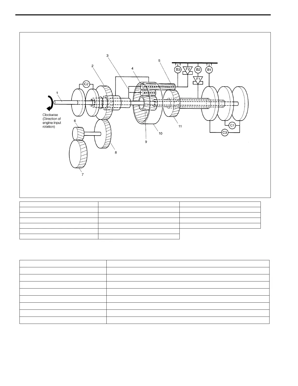 2. Reduction drive gear 9. Front sun gear B2: 2nd brake