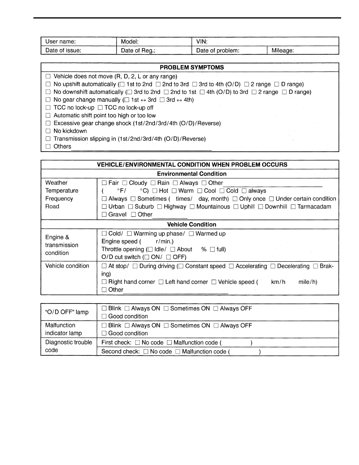 Suzuki Wagon R Plus RB310 - Customer Problem Inspection Form