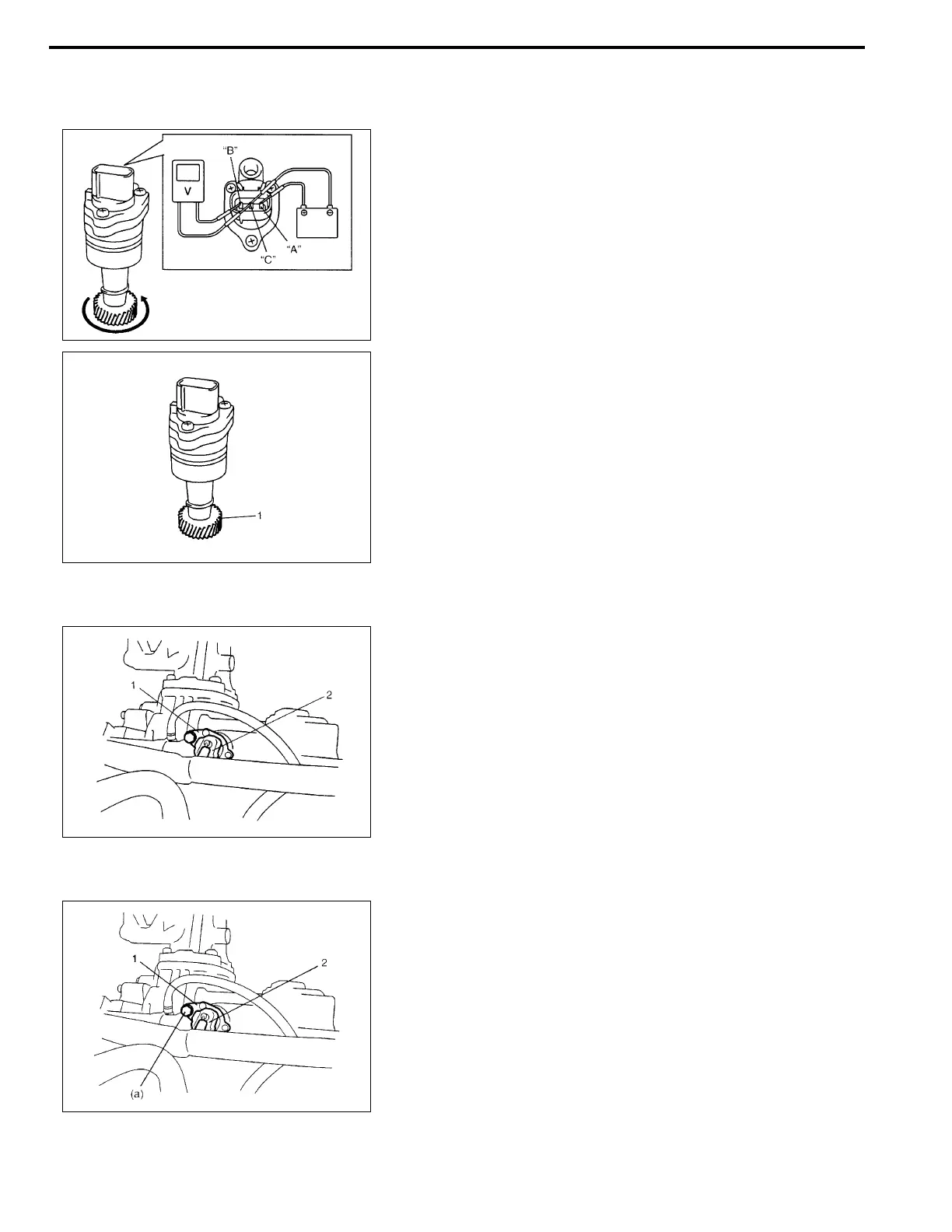 2) Check output shaft speed sensor (VSS) driven gear (1) for