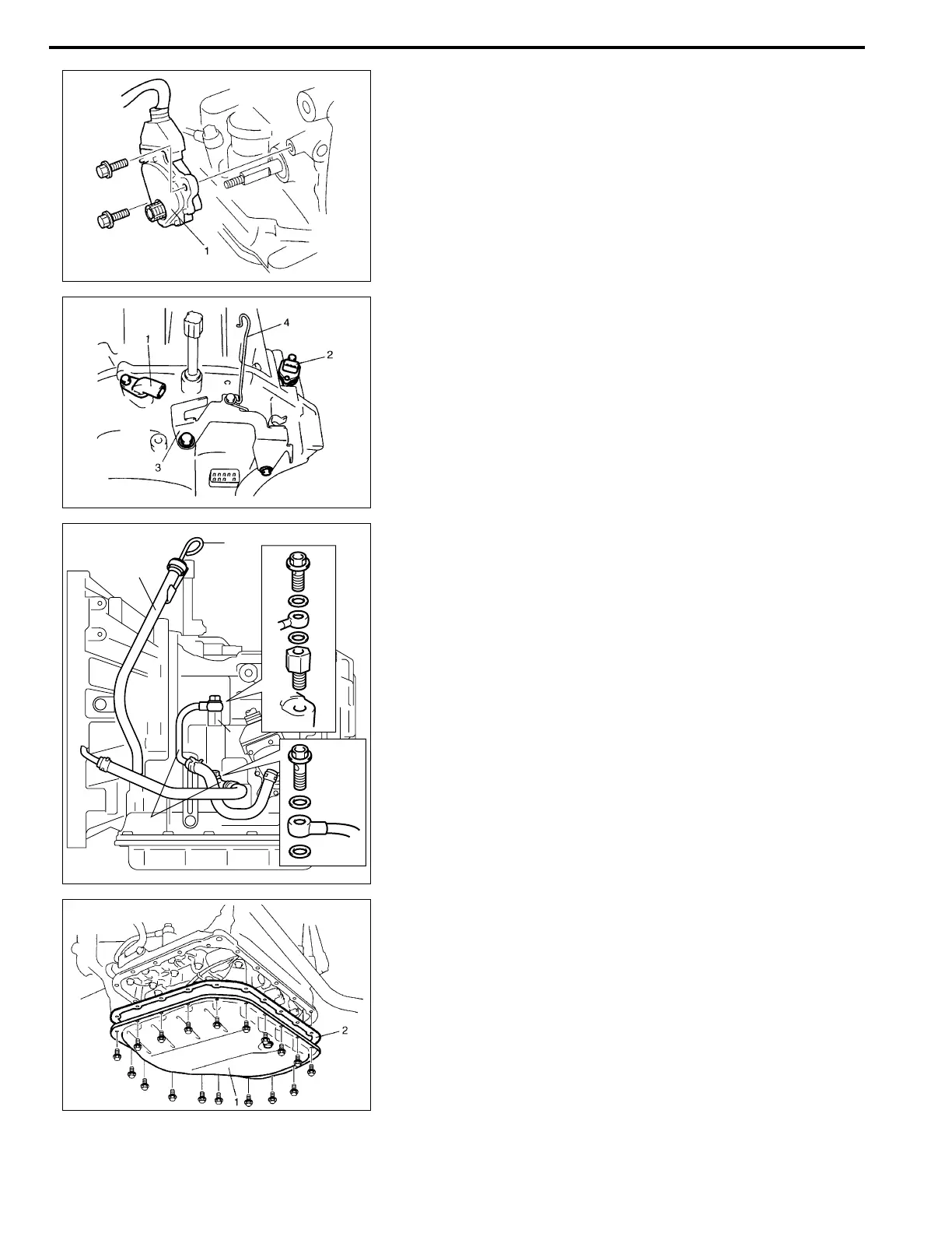 10) Remove oil pan (1) and oil pan gasket (2).