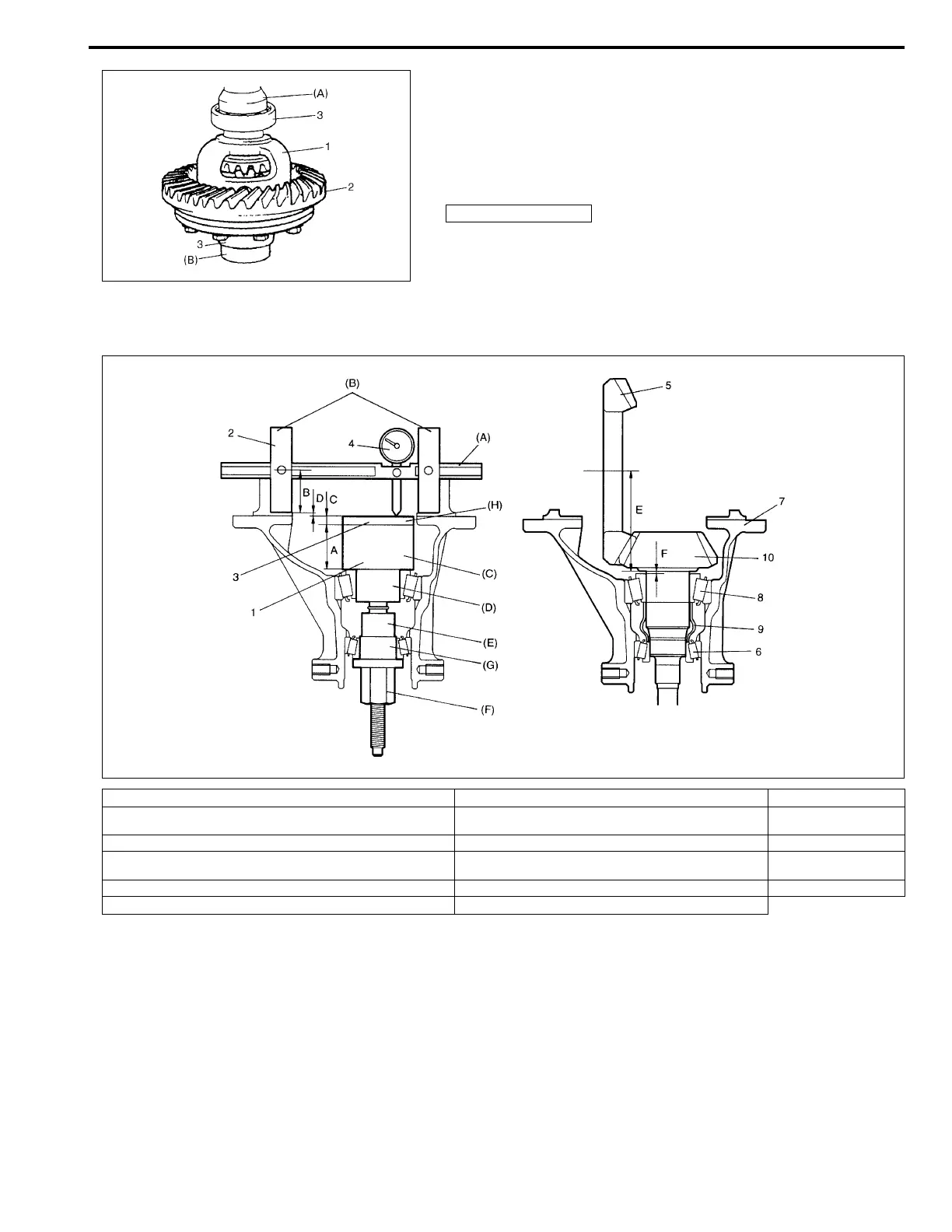 A: Dummy height of pinion form dummy (= 40 mm/1.575 in.) F: Shim thickness for mounting distance adjustment (= D) 6. Front bearing
