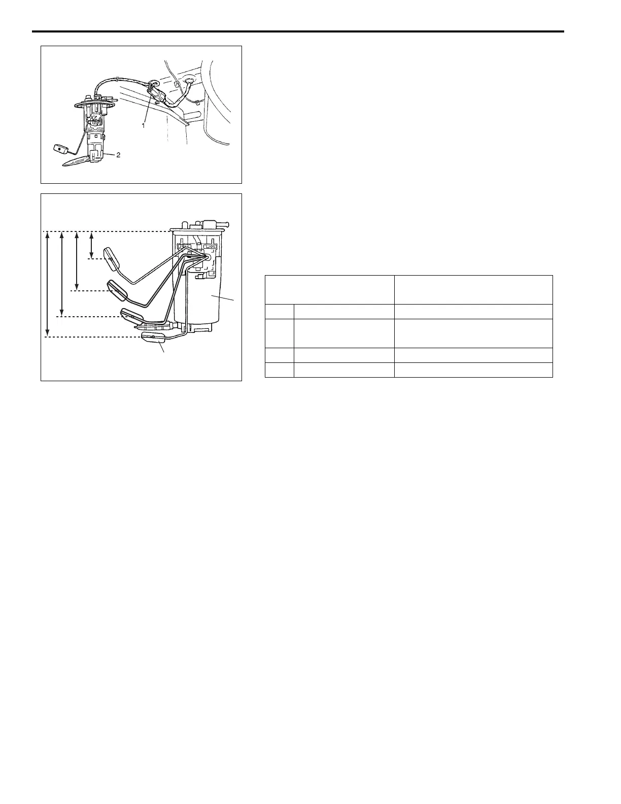 4) Connect fuel pump connector (1) to fuel pump (2).