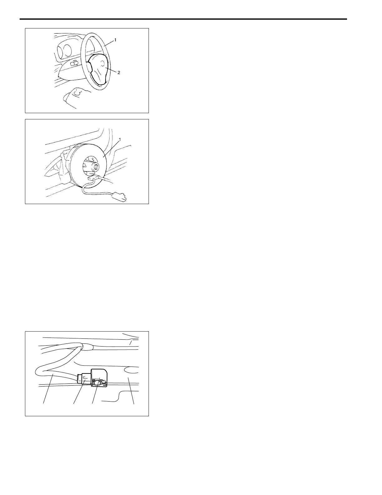 • Steering wheel (1) and driver air bag (inflator) module (2)
