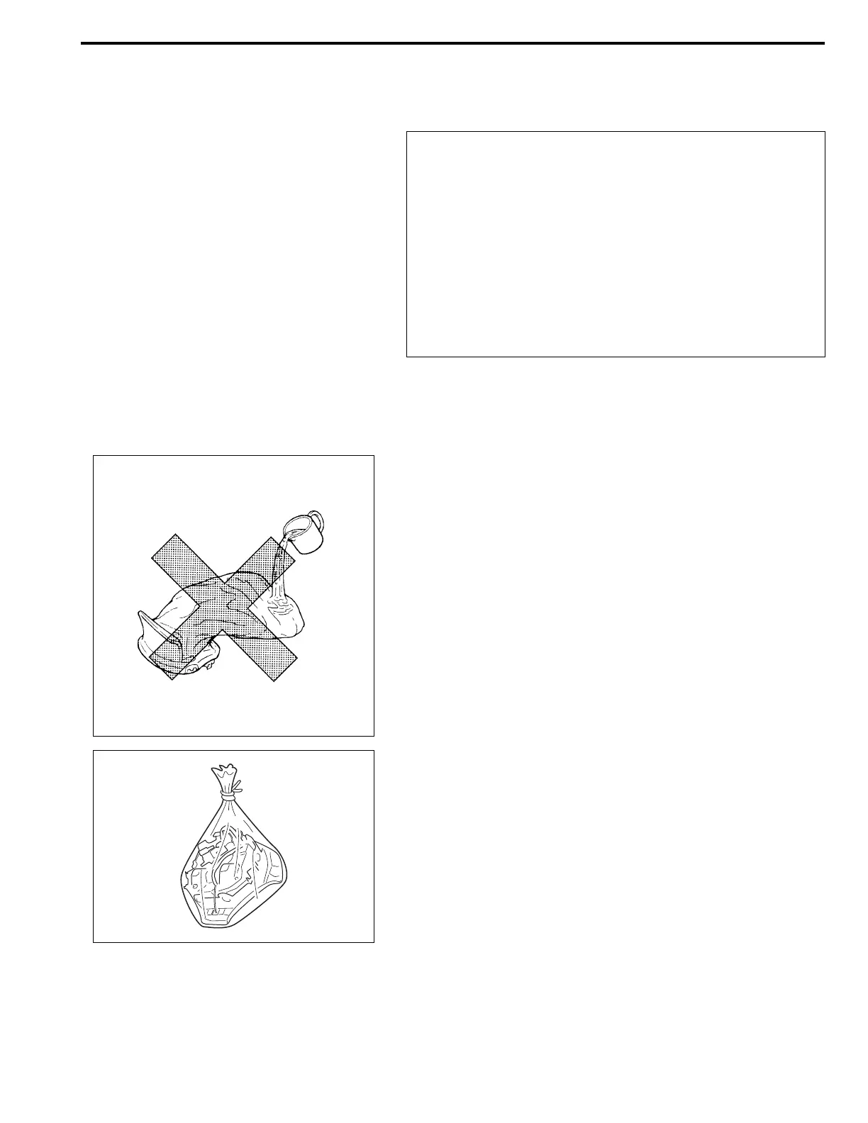 • Never apply water, oil, etc. to deployed air bag (inflator) mod-