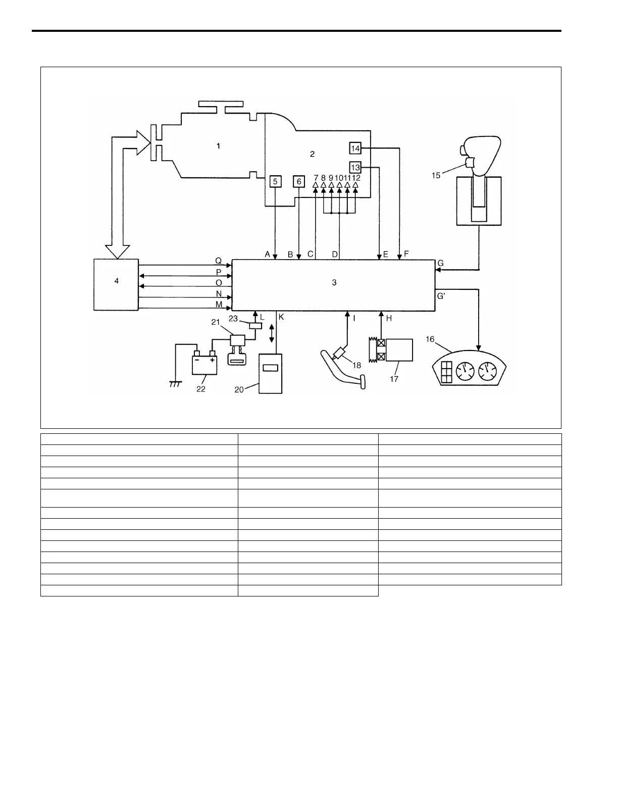 13. Output shaft speed sensor (A/T VSS) D. Shift control signal Q. Engine speed (rev.) signal.