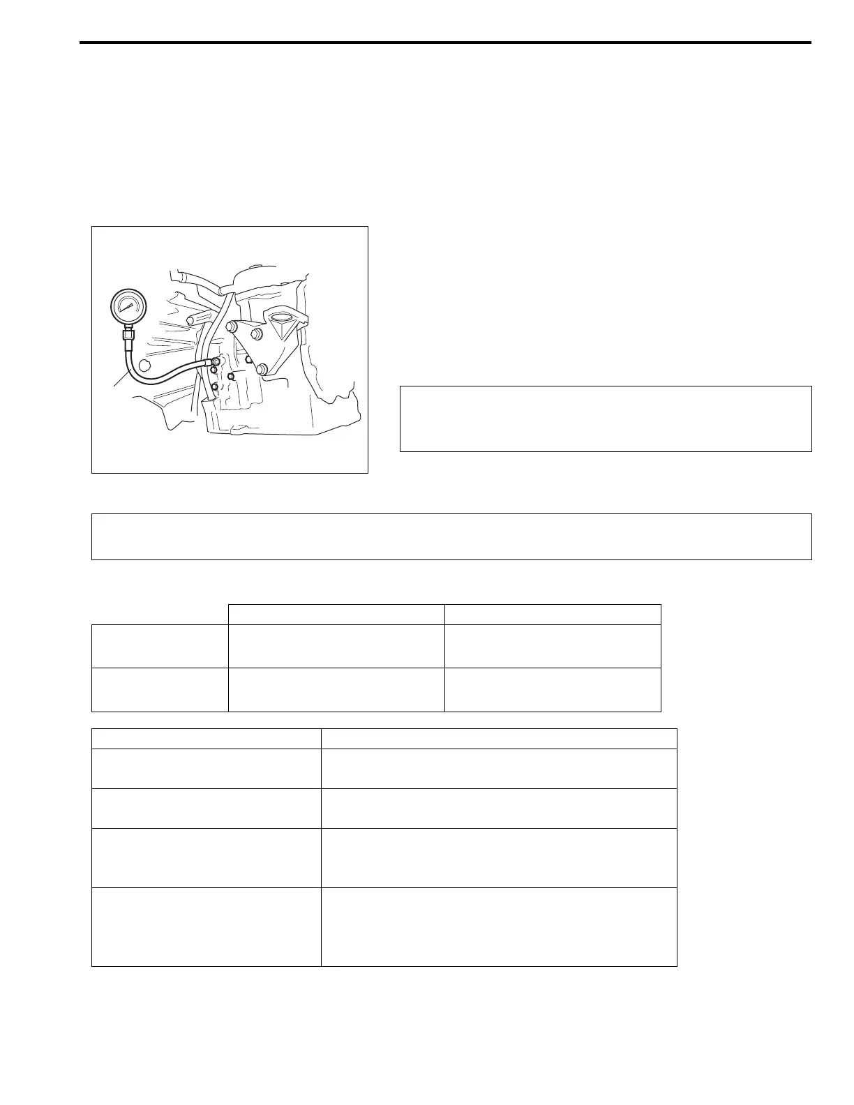 4) Depress foot brake fully, run engine at idle and stall then check fluid pressure in “D” or “R” range.