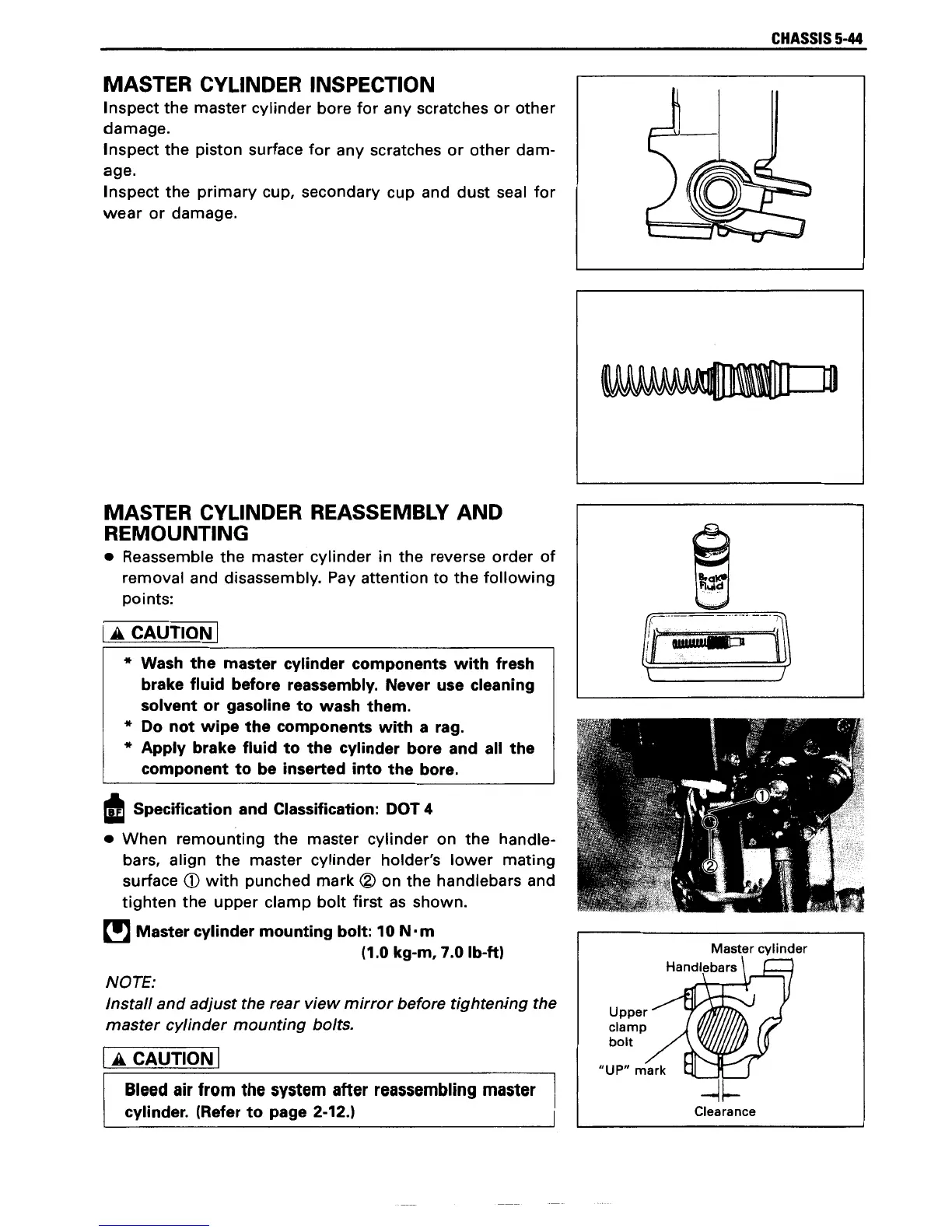 Suzuki XF650 - Master Cylinder Inspection; Master Cylinder Reassembly and Remounting