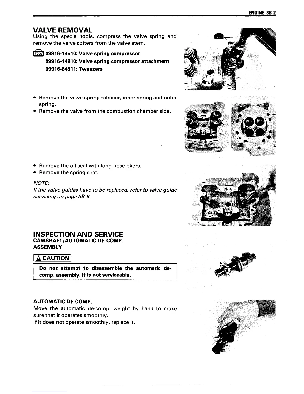 Suzuki XF650 - Valve Removal; Camshaft;Automatic De-Comp. Assembly
