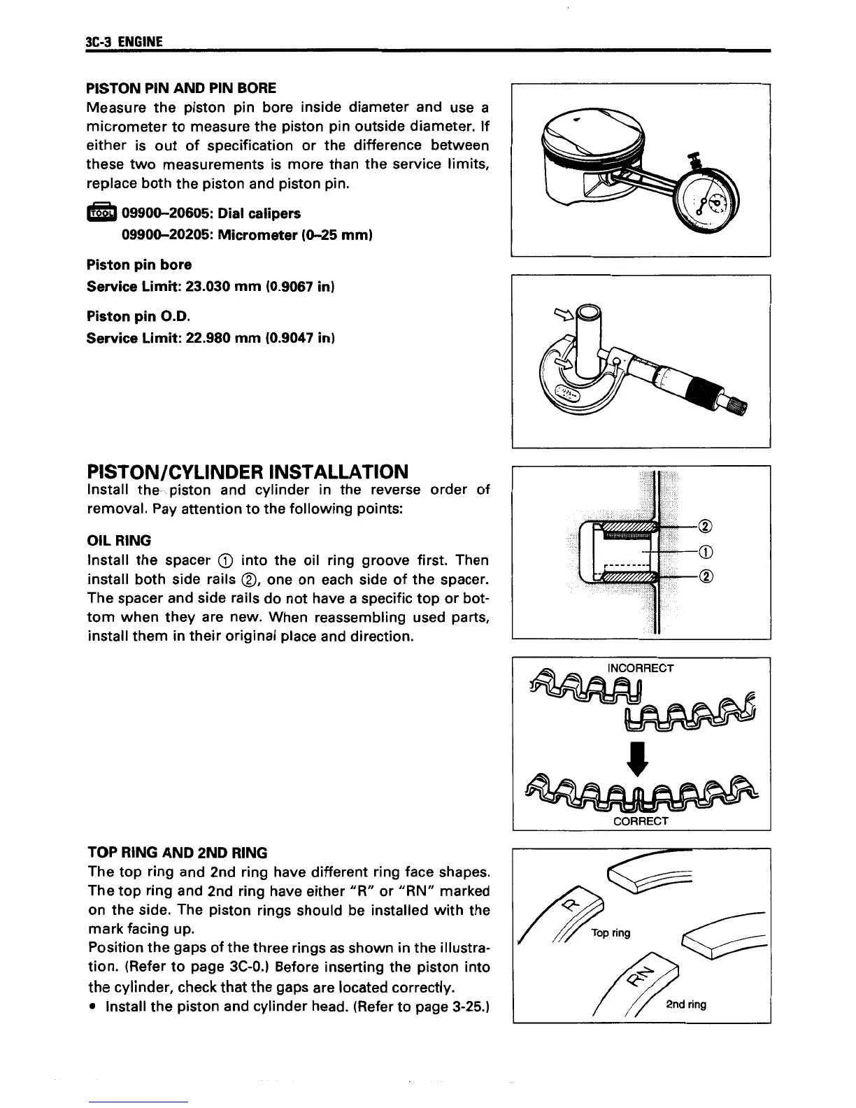 Suzuki XF650 - Piston;Cylinder Installation; Piston Pin and Pin Bore; Oil Ring; Top Ring and 2 Nd Ring