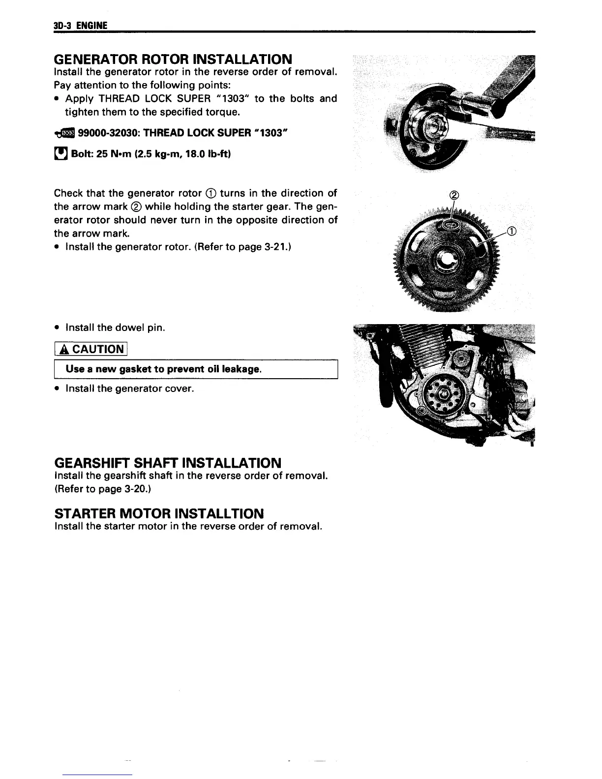 Suzuki XF650 - Generator Rotor Installation; Gearshift Shaft Installation; Starter Motor Installation