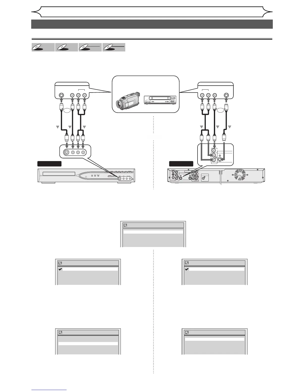 Use commercially available S-Video or Video cable and an Audio cable for this connection.