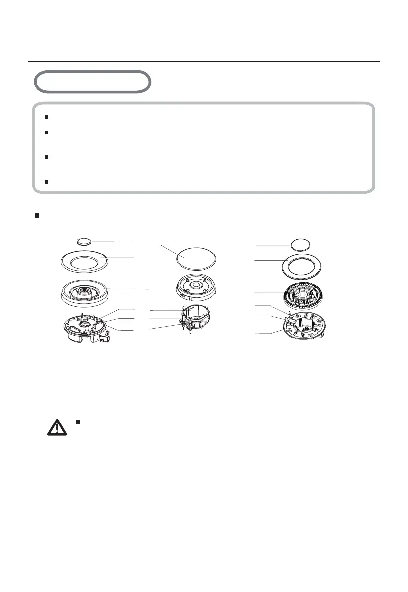 Posicione la tapa del quemador (1,2,3) sobre el esparcidor de llama (4), para que