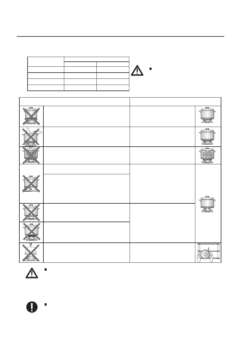 - El diámetro de la parte trasera de la cacerola debería corresponder con la tabla siguiente