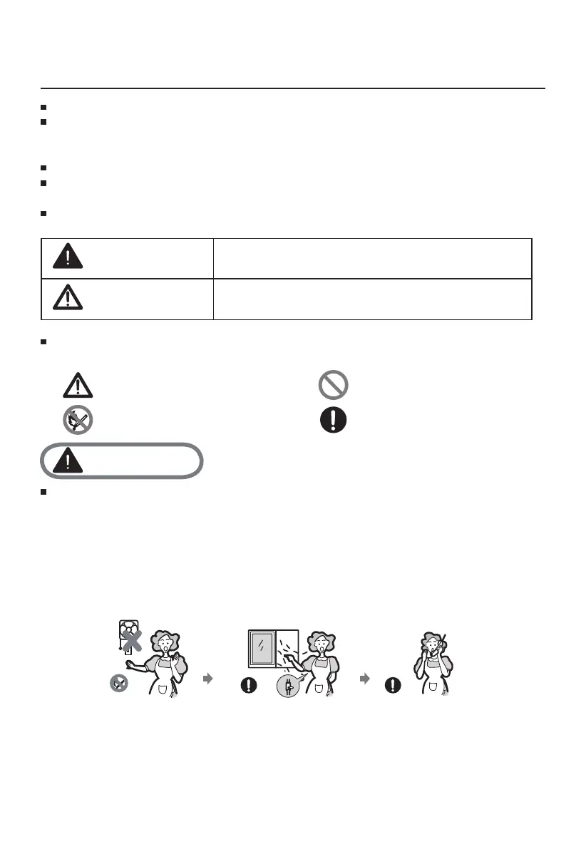 - Do not switch on/off any electrical appliance and do not touch any electric plug.