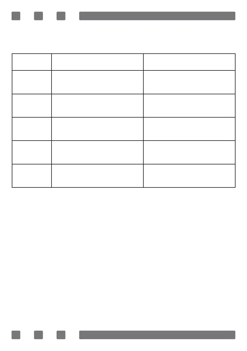 The table below provides the error codes, possible causes and recom-