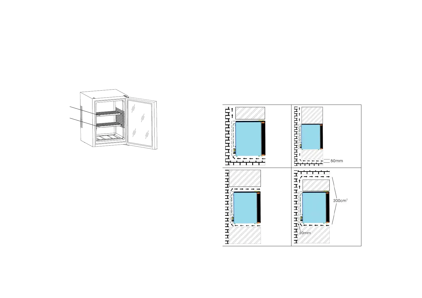 ·The distance between wall and refrigerator side should be at least 20mm