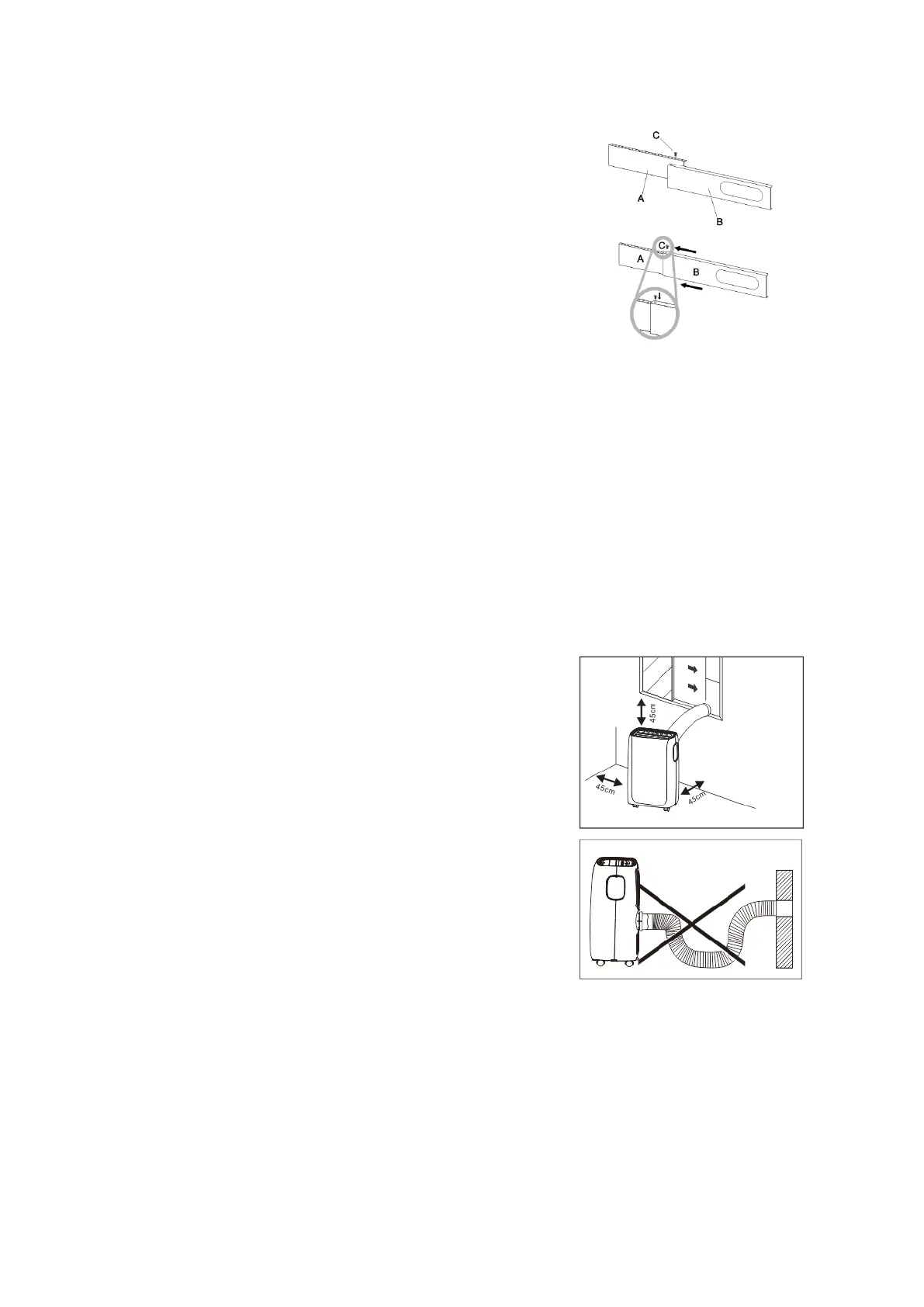 ● Allow at least 18”(45cm) of around and above space away from the wall for efficient working.