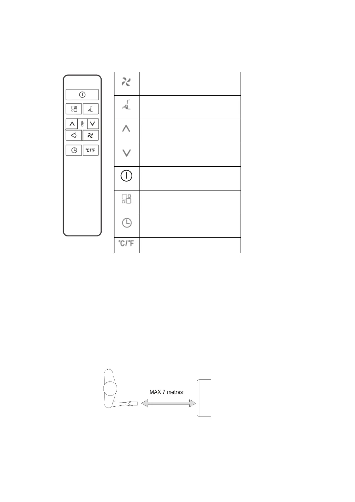 √ The remote control must be no more than 7 meters away from the appliance (without