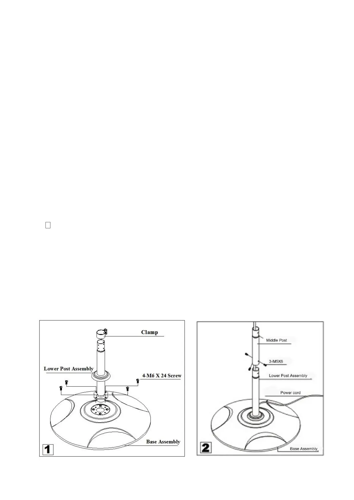 2. Attach the lower column to the base using the 4 screws provided