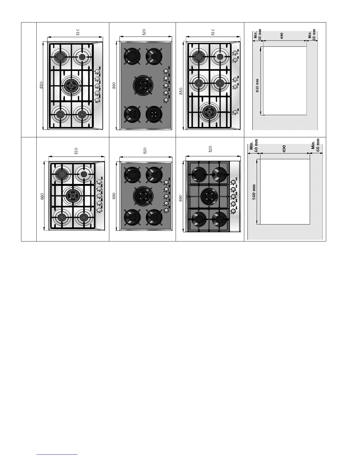 4. If the hob is installed above a cupboard or openable drawer, a heat protection panel must be installed under the