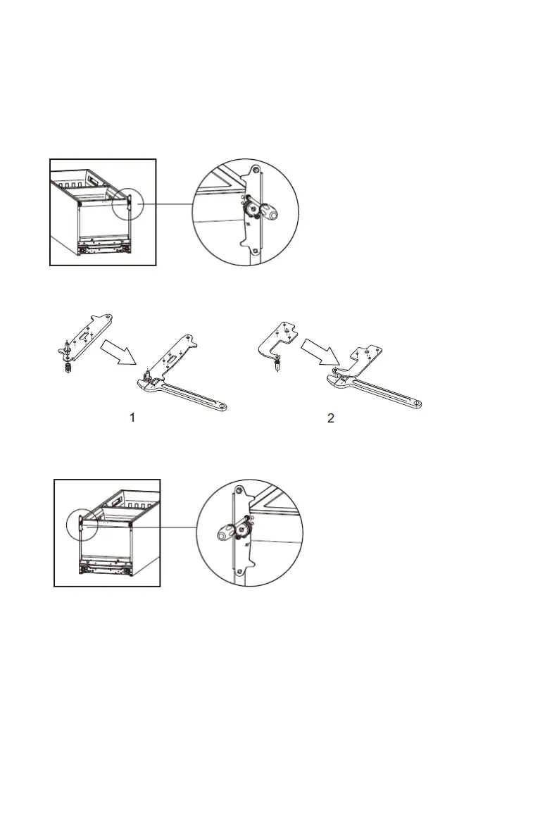 6. Instalar la bisagra inferior en el refrigerador como abajo, enroscar en las patas de ajuste, asegúrese de que