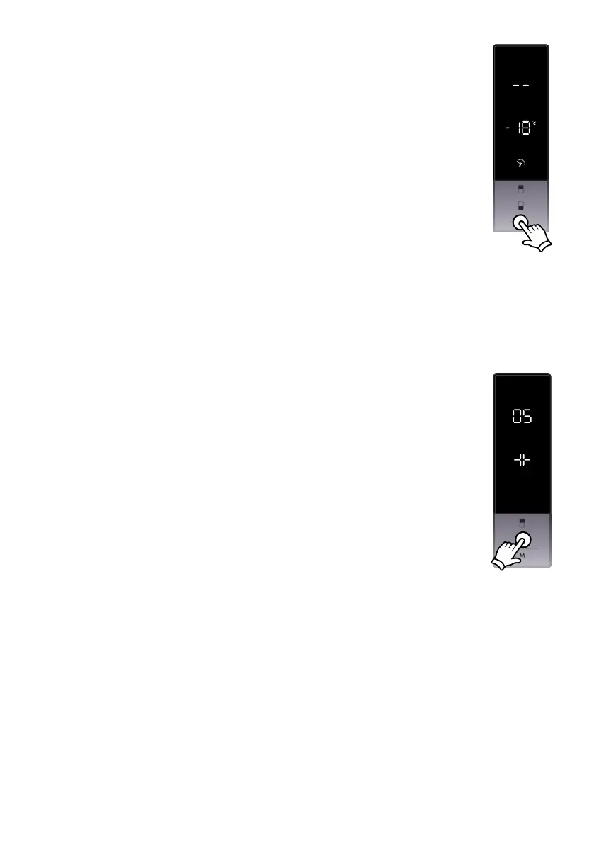 • Carregue no botão do frigoríco para denir o tempo (05 - 10 - 15 - 20 -