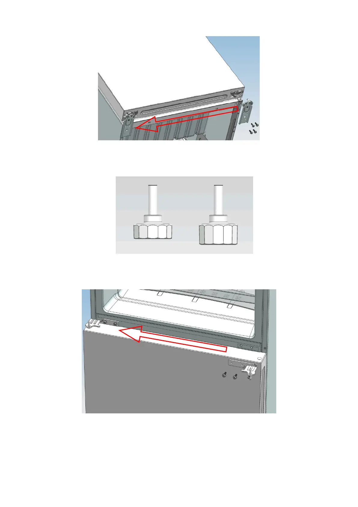 other side of the cabinet; use a tool to screw up the 3 screws to fix the middle hinge.