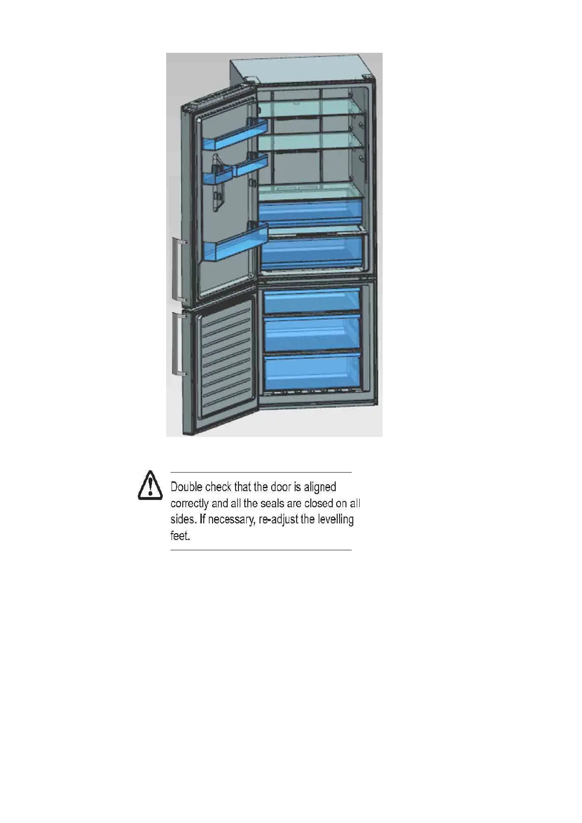 not lay the fridge freezer flat as this may damage the coolant system. Ensure the fridge