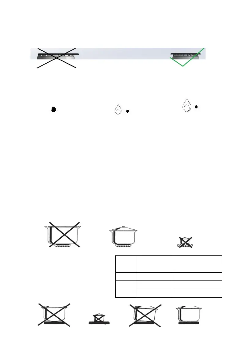 6. At hobs, use suitable pans to burners, be careful that flame do not over flow the